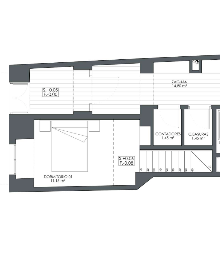 Este edificio conserva la arquitectura tradicional de un corral de vecinos sevillano, caracterizado por la presencia de un patio interior, alrededor del cual se desarrollan tanto los espacios comunes como los privados. Una de las características que diferencia los corrales de Triana de los del conjunto de corrales sevillanos es la forma de las parcelas, que en Triana se presentan más alargadas, dando lugar a un patio estrecho. Peculiaridad que se puede apreciar claramente en la estructura de nuestra casa.
