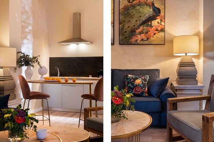 Our interior Studio / Suite consists of a living room with a sofa bed and a kitchen. This apartment does not have a separate room.