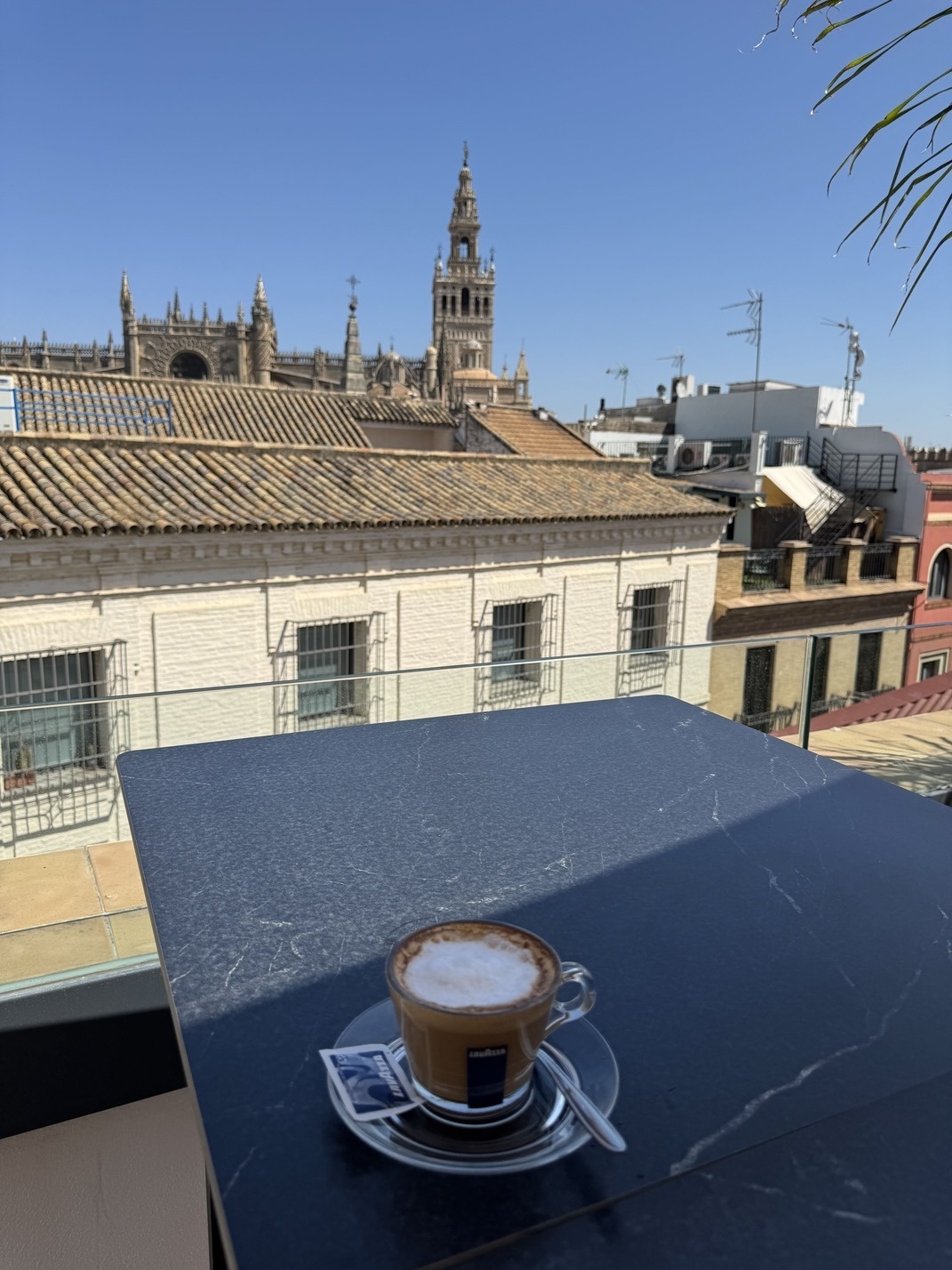 In Seville, the first coffee of the day seeks the light. Even in winter. Even when it's chilly. All it takes is a table in the sun, a white wall to reflect the warmth, a quiet corner.