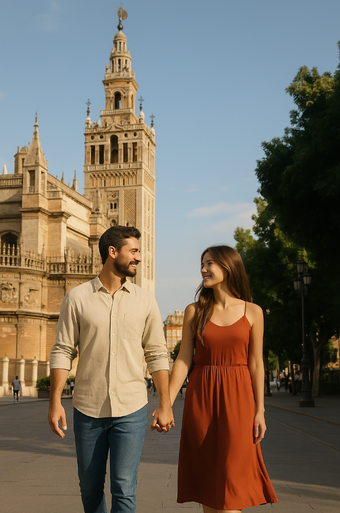 Imagina disfrutar de un desayuno juntos en una terraza histórica, con Sevilla despertando a tu alrededor...