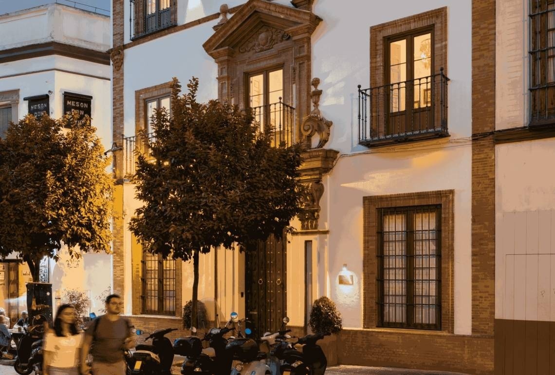 Un edificio señorial lleno de luz y estética sevillana donde cada rincón está pensado para cautivar. Su estilo fotogénico, sus azulejos, su escalera de mármol.. es una casa que se deja retratar y que inspira.